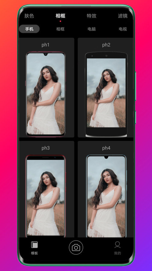 2、多种美颜滤镜素材模板,实时更新,在线一键拍摄。