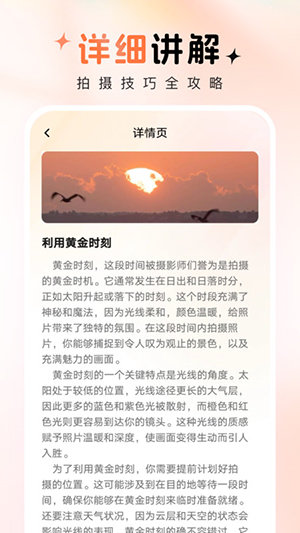 提供实用建议和技巧,帮助用户快速提升摄影水平。