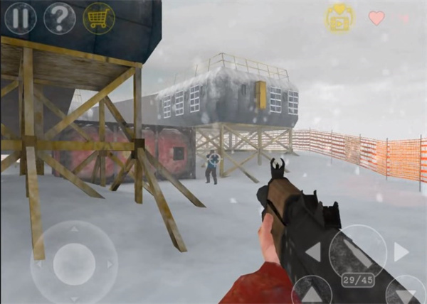 1、我们在游戏中会遇到炸毁实验室的任务,有些玩家不知道怎么完成,首先来到这个老头面前,他会阻止我们行动,这个时候就需要拿起手中的枪对准他,让他去见上帝。