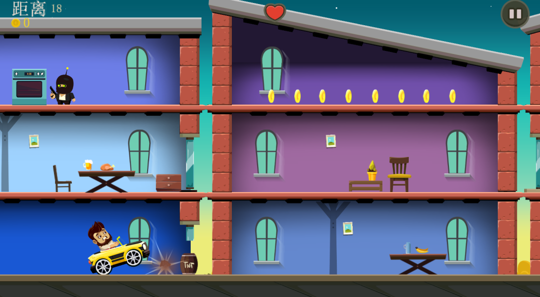 3、你可以驾驶着一个汽车在关卡中去进行闯关的,横冲直撞的非常的震撼,还有爆炸特效;