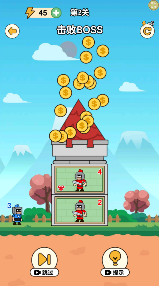 3.孩子们需要通过操作骑士,解决各种问题,击败塔中的怪物,最终到达塔顶。