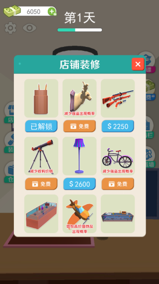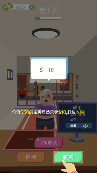 2.通过趣味性的判断选择的游戏方式,玩家要对这些商品完成判断,游戏中将会为你设置很多的陷阱,玩家千万不要轻易的购买一些没有价值的物品,需要注意的是在要中遇到强盗或是小偷盗取而来的名贵物品千万不要收入,你要通过叫警察将其带走。