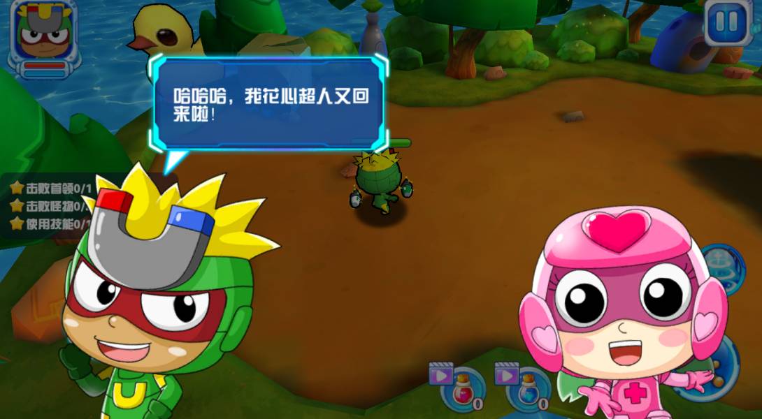 1.游戏画面非常精致,全新的卡通风格,梦幻般的画面,延续一贯的开心超人的画风。