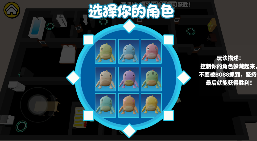 2.玩家可以选择不同的角色形象,可爱的动物角色,每个角色都有独特的技能和特点;