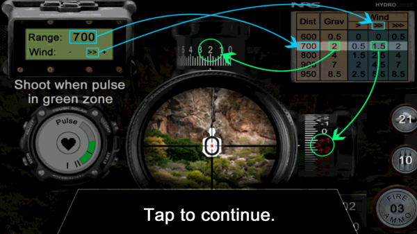 2、关注心跳表,等心跳处于绿色区域时射击,此时射击稳定性最高,能提高命中精度。