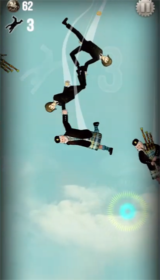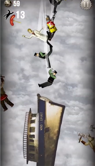 5、运用你的方法来黏住天上不断掉落的人,同时还要躲避飞机和大鸟的碰撞。