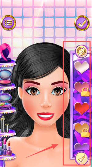 1、初次游玩时,先从简单妆容入手,比如用一字眉搭配闪亮腮红,熟悉化妆工具使用,再尝试复杂烟熏妆。