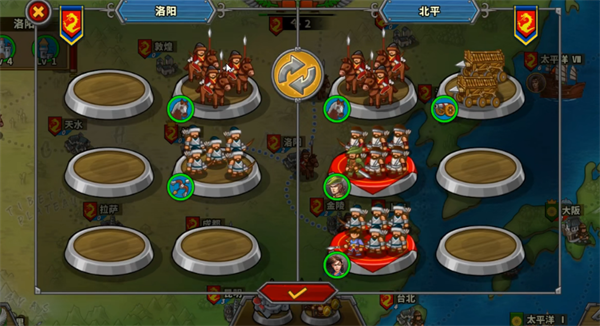 2、放置您自己的城市防御工事和防御阵型以抵抗敌人的攻击击败对手;