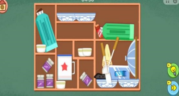 3.每一关都设计了一个独特的场景,场景中充满了各种凌乱的物品,玩家需要将这些物品按照类别或用途进行整理。