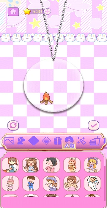 3、开始制作好看的玻璃项链,现在你可以选择下方的贴纸,装饰在透明玻璃上,装扮成最好看的项链。