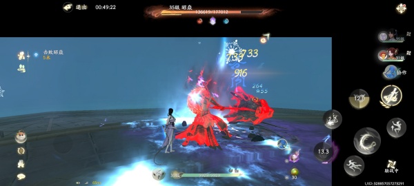 1、挑战 35 级昭焱时,留意其血量变化,利用技能连招输出,同时注意躲避红色范围攻击。