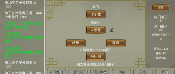 4. 定期安排弟子下山游历可以触发隐藏剧情线,这些特殊机遇往往能获得上古传承或稀有天材地宝的线索。