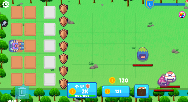 1.玩家需要在敌人进攻的间歇期,在有限的格子内,高效地进行合并操作;