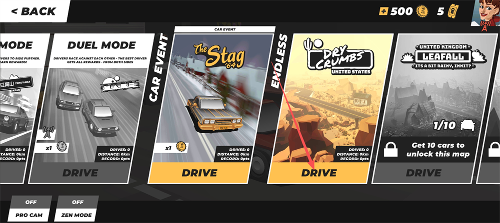 3.沿途收集金币以积累分数和资源,可用于解锁新车或升级油箱、引擎等车辆性能。