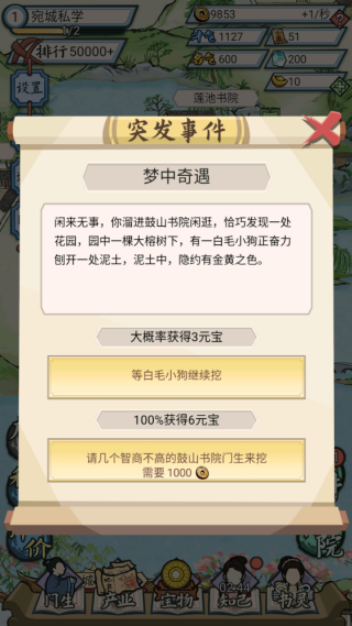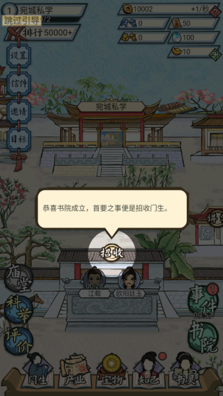 1、简单有趣的玩法等你去尝试,管理好你的书院吧,有很多的内容是需要你去注意的,好好的把握;