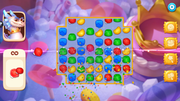 1.超治愈视觉风格,采用高饱和色彩与细腻光影,糖果爆裂时的粒子特效搭配清脆音效,构建全方位感官享受。