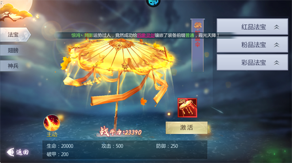 1-游戏中玩家可以给自己的法宝来提升属性,只要玩家到达8级就可以使用法宝来进行收妖了;