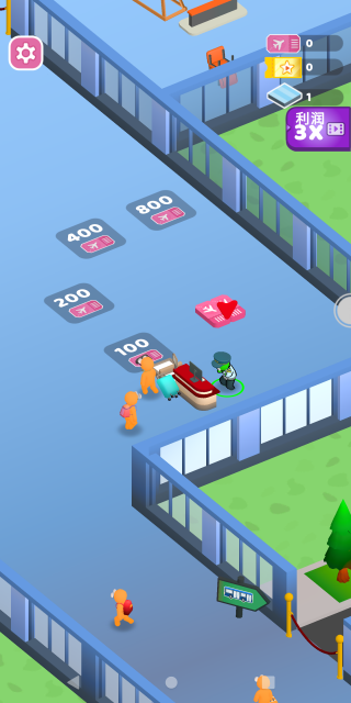 4. 如下图所示,我们的机场刚开业,缺乏各种设施,玩家需慢慢积攒金币,逐步解锁椅子、安检机等各类设施!