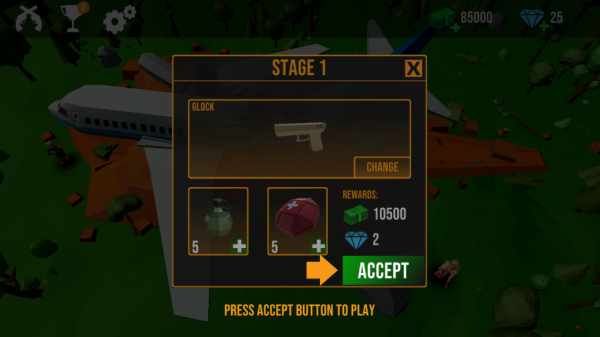 1、每个关卡都会对武器和道具加以限制,玩家要依序挑战关卡,进入各个地图消灭僵尸。