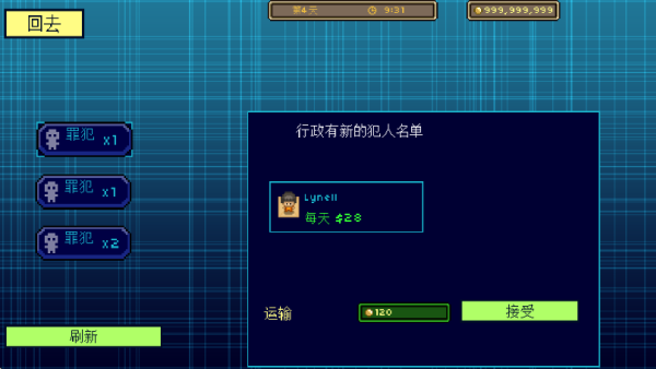 2. 如图所示,玩家能够选择接收不同犯人,管理过程中每日可获取各异收益。