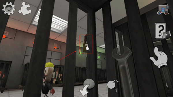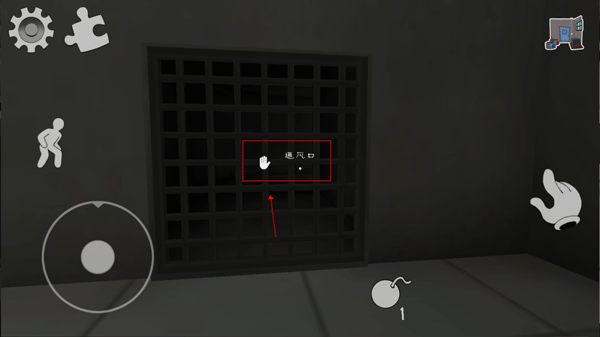 5、笼子打开后往右走,墙角处有个通风口,打开它就能逃出笼子抵达另一个地方。