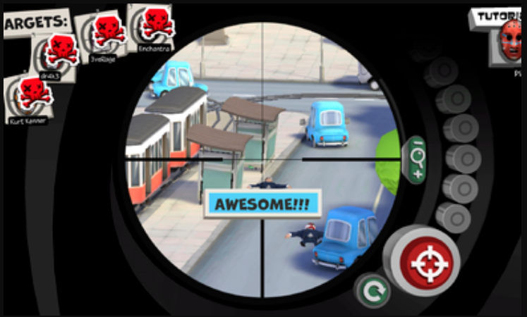 2、狙击模式中用瞄准镜锁定目标,点击射击键命中敌人,完成目标击杀可获得 awesome 等反馈。