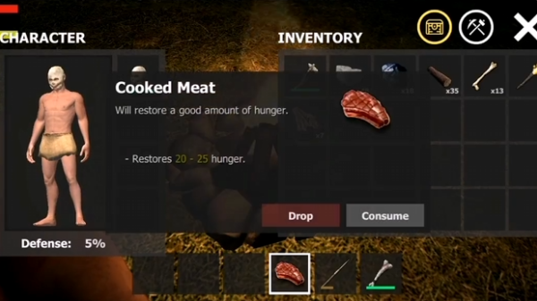 4、玩家可通过食用烤肉提升饱食度,维持角色的良好状态,务必准备充足的食物。