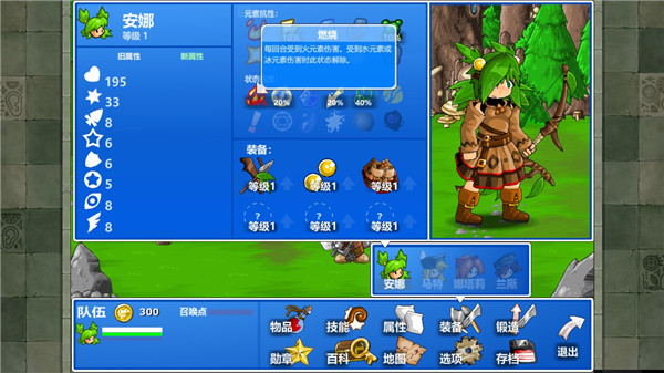 3、在角色界面查看安娜的属性与装备,优先为其配备等级1的装备,提升基础战力,便于探索。