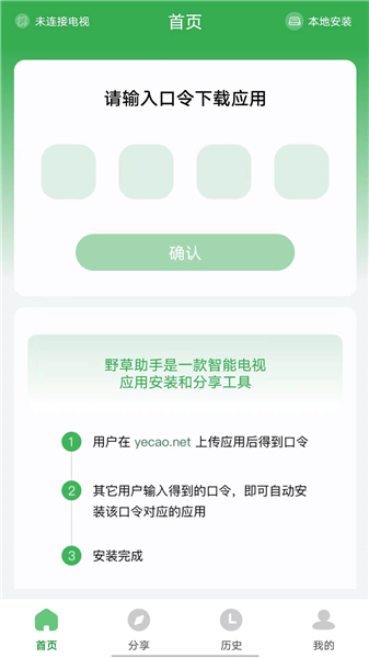 1、确保电视和手机端均已安装野草助手,在手机端输入指定激活口令