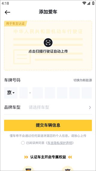 按指引上传证件照片,点击【提交车辆信息】完成认证;