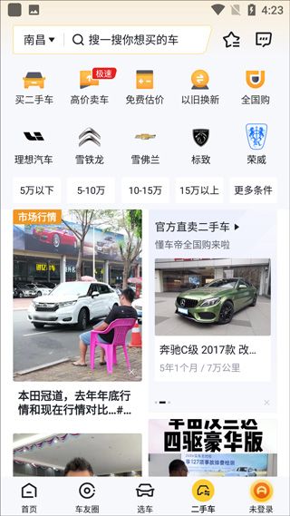 在首页导航栏选择【二手车】入口;