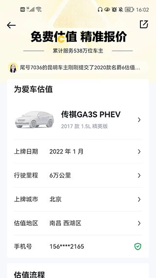选择【免费估价】依次填写车辆信息;