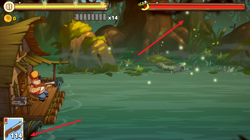 3、当鳄鱼出现时,通过点击屏幕进行射击,打败可恶的鳄鱼。