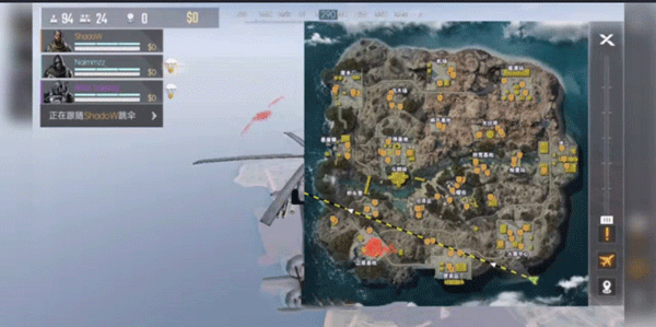 3、调整妥当后,玩家将与自己的三人小队以及其他玩家一同乘坐飞机前往一座孤岛展开大逃杀