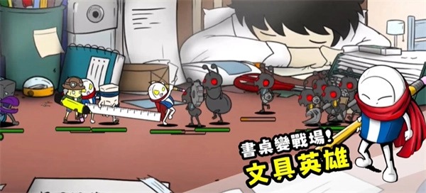 文具英雄国际服,其原名是stationery heroes。在这款游戏中,有超过百个英雄角色,它们皆由橡皮擦、尺子等常见文具幻化而成。只需进行简易的搭配组合,就能构建出最强的文具军团,于书桌上击退一波又一波的敌人。战斗进程趣味十足,各种技能均可尽情施展。