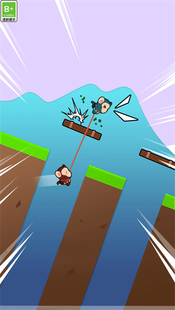 1、双方需要点击屏幕协调节奏,以使猴子同步奔跑跳跃,跨越障碍。