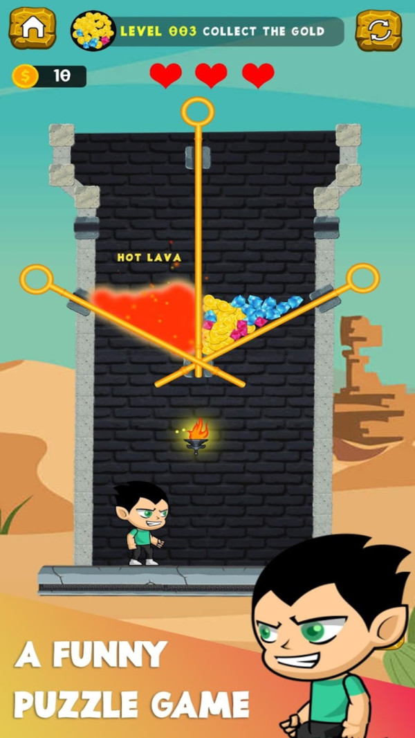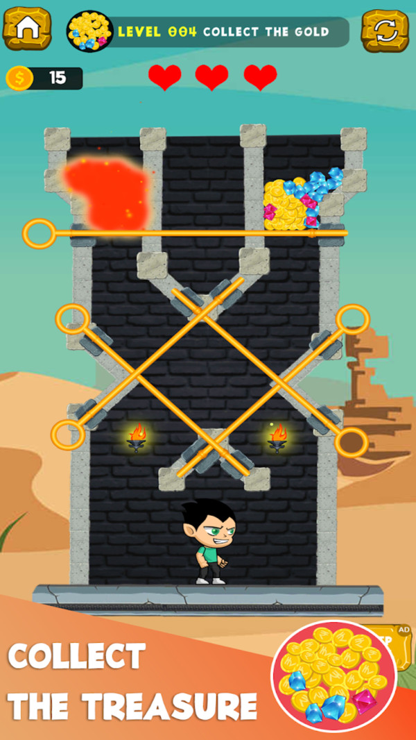 救救小英雄游戏是一款于抖音走红的拉针救人闯关类游戏。在游戏的各个关卡里,均设有各异的危险状况与机关陷阱。玩家需通过挪动拉针的位置,助力游戏中的角色经由安全出口成功逃脱并获救。该游戏拥有众多关卡,且每个关卡的内容以及挑战难度皆不相同,极具挑战性!
