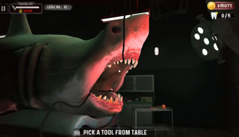 3、动态随机生成机制,每局游戏都会随机组合鲨鱼牙齿病变类型(如龋齿、碎裂)、可用工具套装,甚至模拟玩家手部稳定度的动态抖动参数。