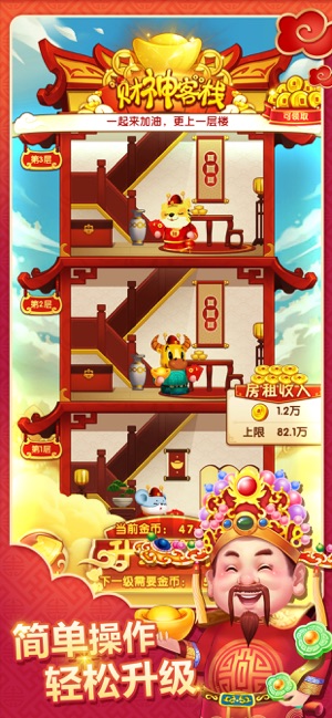 财神客栈盖楼是一个以建造财神酒店为主题的模拟游戏。每次你成功地建造了一个楼层,你就能得到你想要的红包。每次你完成一个盖楼,你将消耗一定数量的金币。你建的楼层越高,你得到的回报就越多。通过收集各种道具,灵活掌握使用方法,您可以轻松打造财神酒店。整个玩法融入了许多全新的内容和元素,体验令人兴奋。