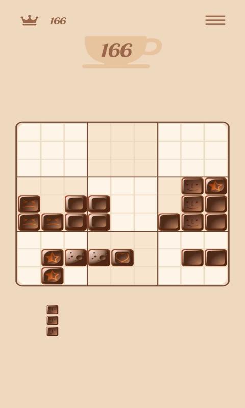 咖啡拼图版是一种令人上瘾的拼图游戏,游戏画面使用棕色,里面的拼图一个接一个像巧克力。我们需要把这些像巧克力一样的方块放在格子上,只有当我们填满所有的格子时,我们才能消除它们。然而,在某些模式下,我们只需要填充水平或垂直的方块。