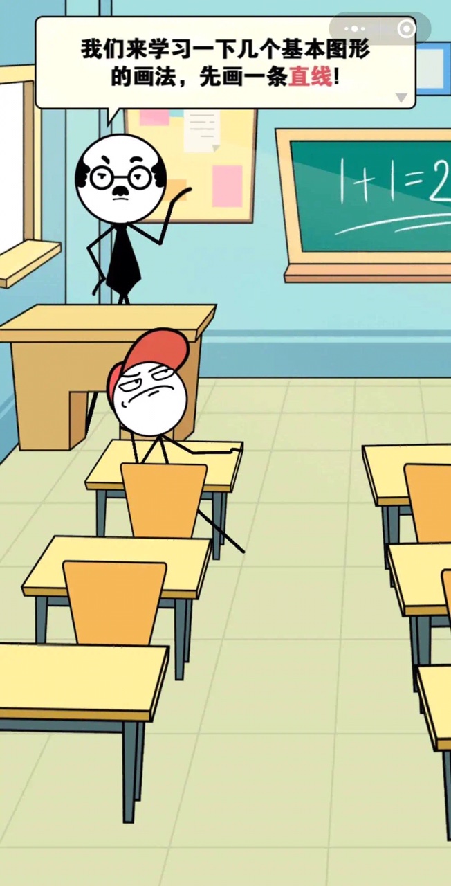 2、超级爽快的操作过程,并没有多少复杂的内容,简单的绘制涂鸦玩法,就能与老师斗智斗勇。