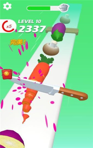2、控制菜刀,快狠准的切下去,玩起来非常的轻松,还可以赚红包,
