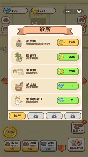 2、为了容纳更多的病人,去解锁更多的设施扩大你的医馆;