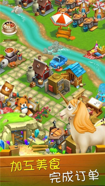 游戏玩法经典,玩家经营一家属于自己的农场,农场品种丰富,融合农场种植养成,吸引更多人前来旅游!