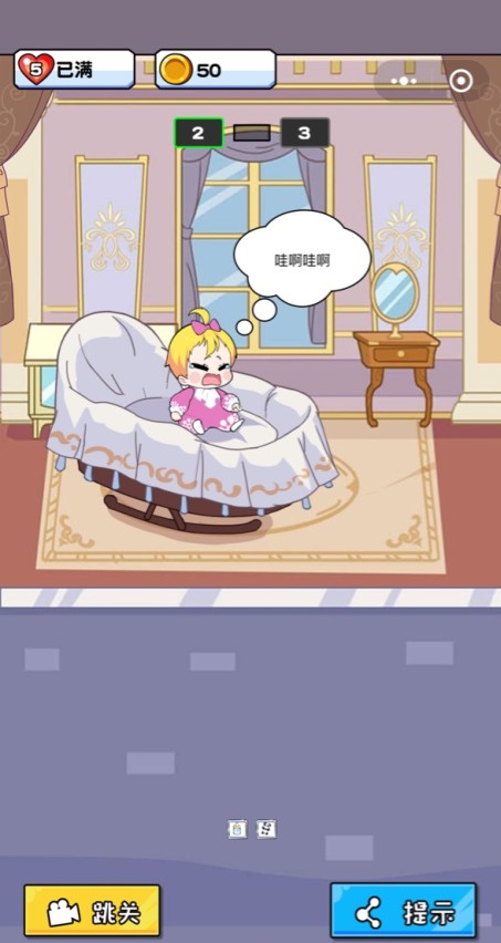 鹿的小岛是一款心理闯关的游戏。这个可爱的小女孩有时有危险,有时会突然哭。玩家需要根据给定的场景描述从下面的道具中选择正确的道具来解决问题。如果小女孩哭了,你哭是因为你想喝牛奶或玩具吗?根据周围的布局和你尝试的场景,猜一猜,选择合适的道具,让小女孩停止哭泣。