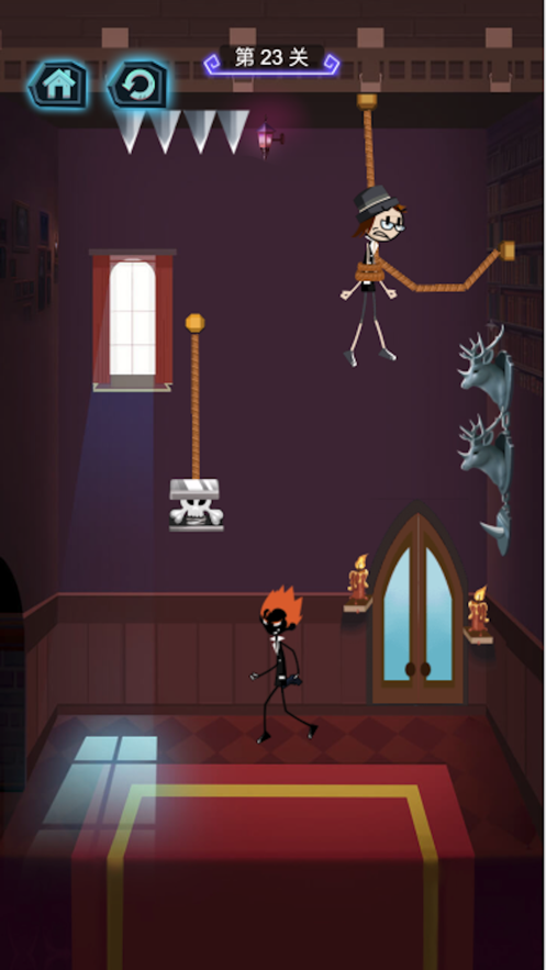 1、陷阱总是会有一些异常的地方,如果仔细一点还是能够很好躲避的,你需要隔断绳索解救人质。