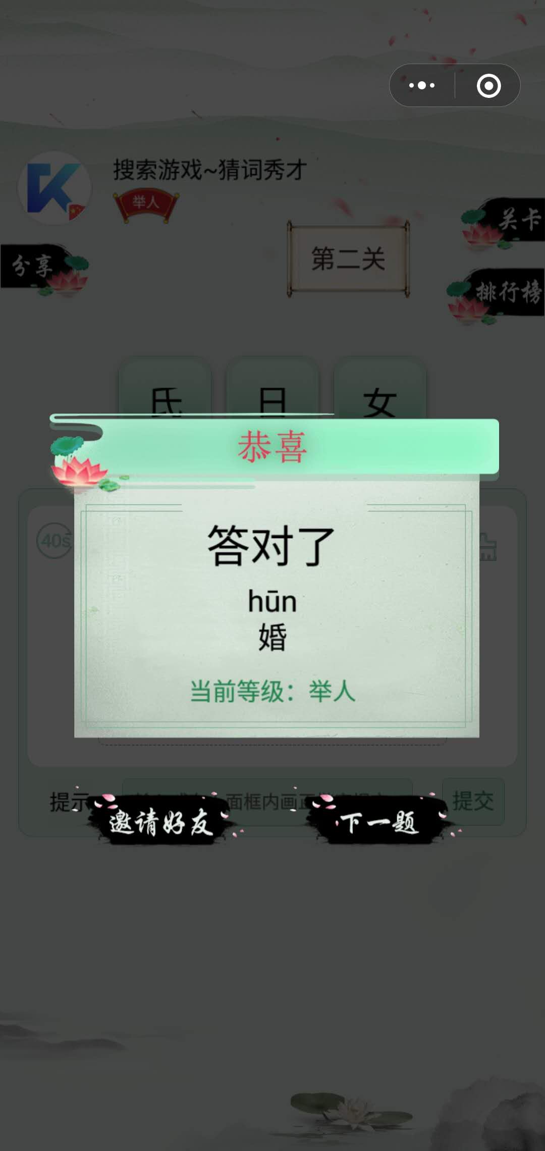 1、你需要让自己的实力得到更多的提升,不断的解谜和猜词可以帮助你快速升级。