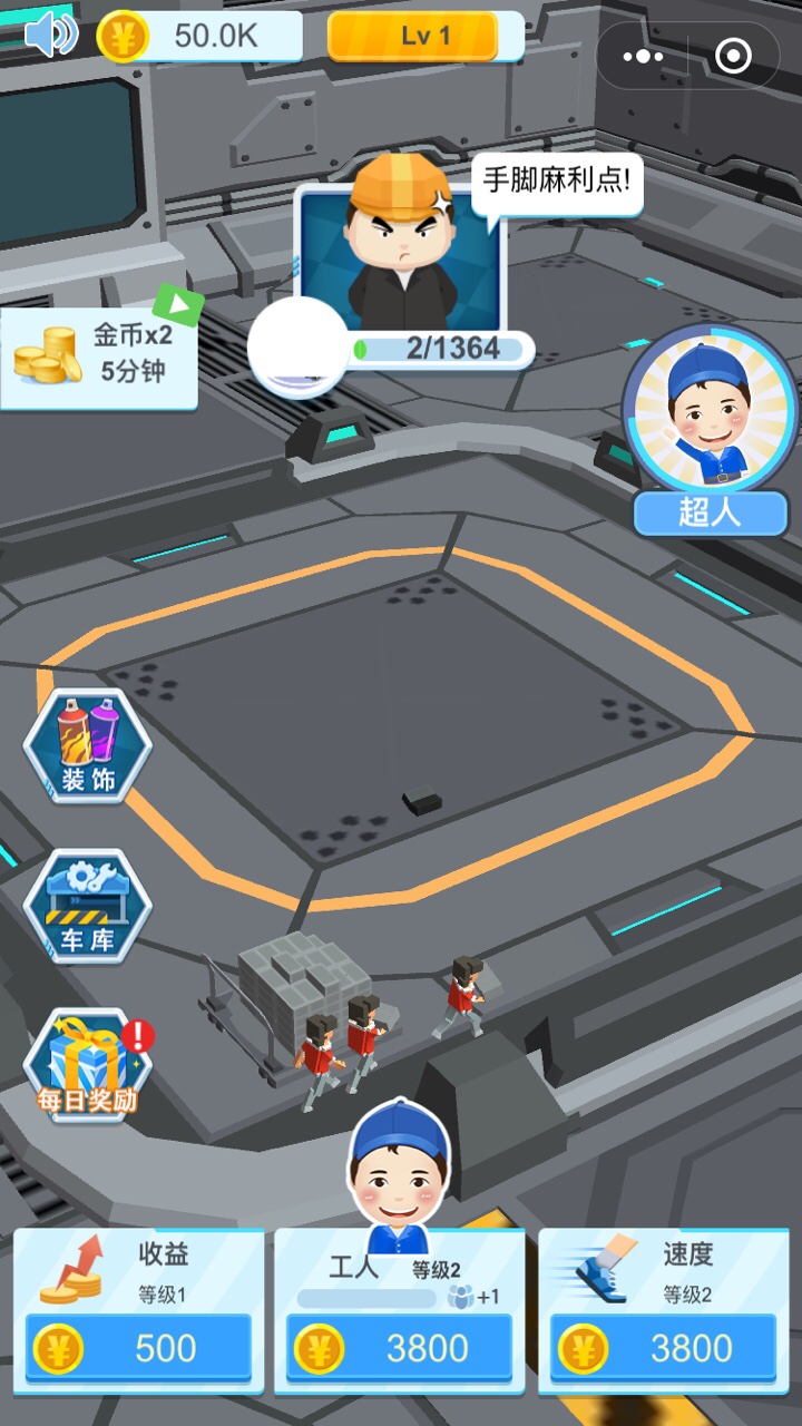 3、放置挂机的模式是很轻松的,不用你管理,工人小强就会一直不断的工作。