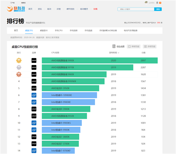 目前的第一批天梯榜涵盖桌面CPU处理器、桌面GPU显卡、手机SoC、手机影像、手机拍照、手机视频、电动汽车续航(稍后上线),均基于驱动之家评测室实测数据、GeekBench/GFXBench/DxOMark等数据汇总而来,可以一目了然地了解各类产品的性能高低,最近5-7年主流品牌的产品基本实现了全覆盖。其中,桌面CPU处理器榜单可查看综合性能、单核心性能、多核心性能、单项基准性能,桌面GPU显卡榜单可查看综合性能、公版卡性能、单项游戏性能、单项基准性能,手机SoC榜单可查看综合性能、单项基准性能。手机影像、拍照、视频榜单,均可查看综合成绩,以及后置摄像头、前置自拍的不同成绩。以上榜单,还都支持根据不同品牌、产品发布时间来检索性能排序。