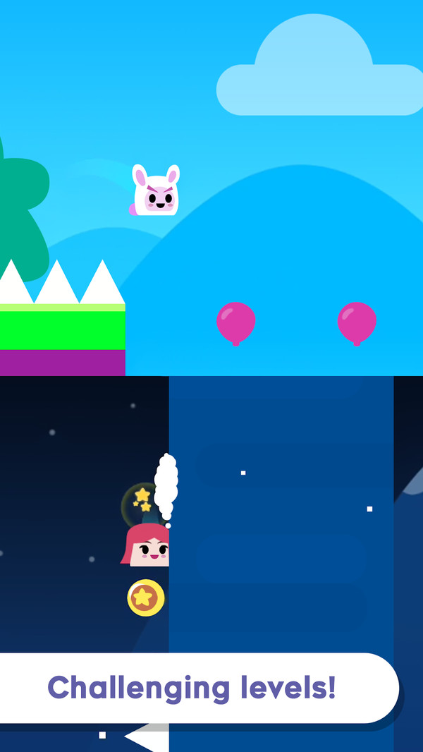 方块兔子历险记是一部闯关游戏,令人上瘾的兔子历险记。可爱的小兔子又淘气了。它喜欢寻找刺激的感觉,想尽一切办法突破自己的挑战。我们需要控制方块兔继续前进,避开各种障碍,顺利记住路上的道具和金币。